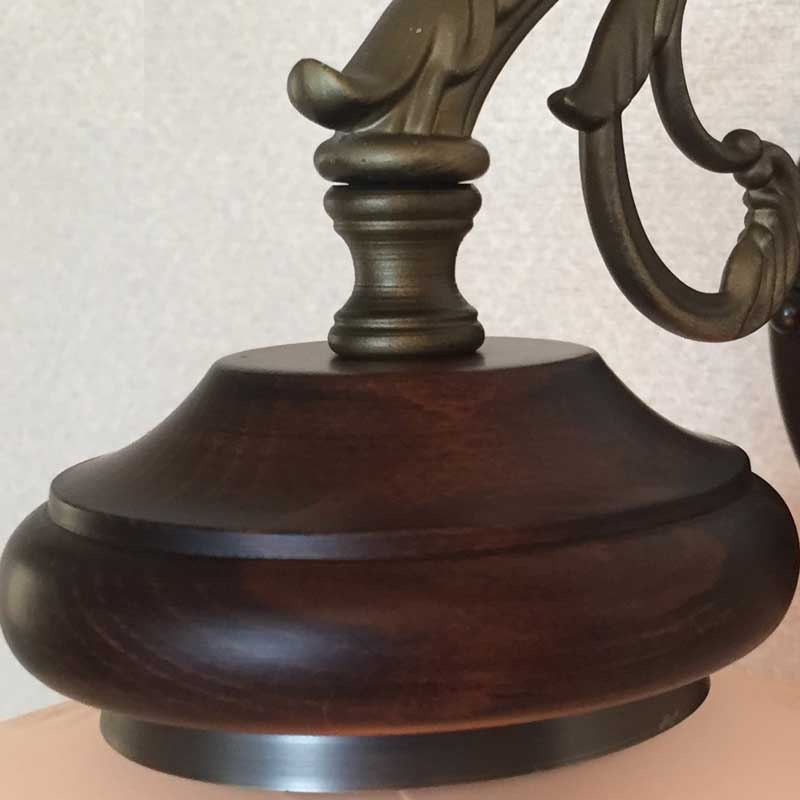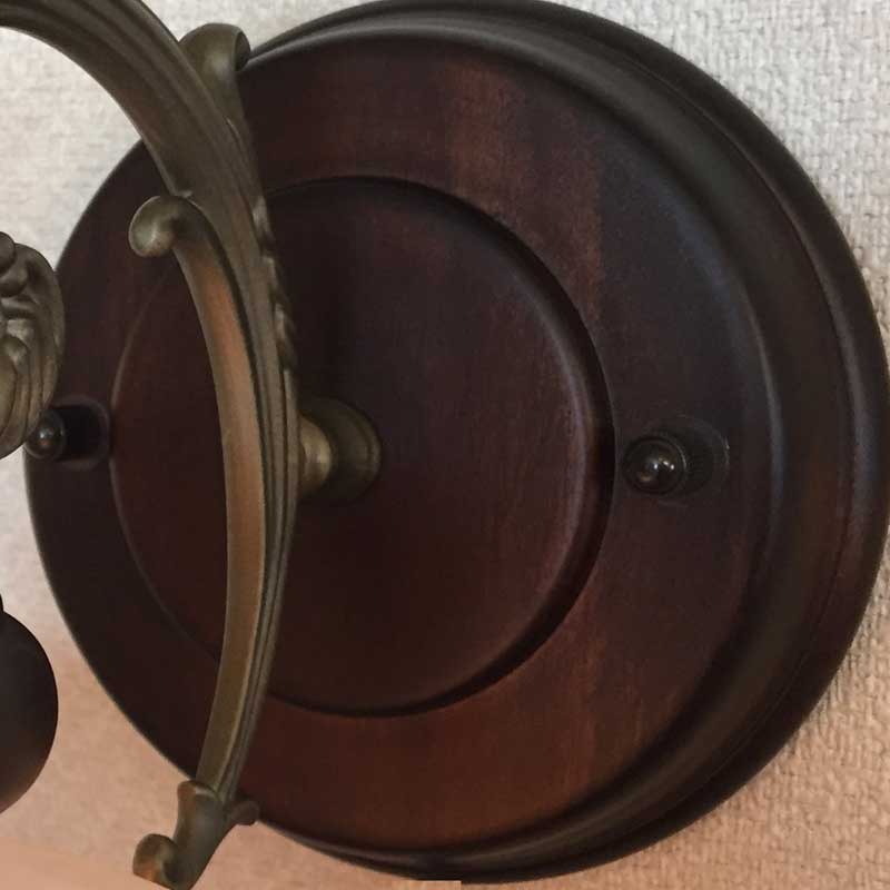 クラシックなレトロ感あるオリジナルタイプのブラケットライトです。アームは金属鋳物を使用し本体とアームには木飾を使用しております。