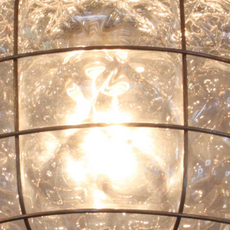 職人の吹きガラスによって作られるこのガラスには、光の拡散を生み出す細工が施されています。