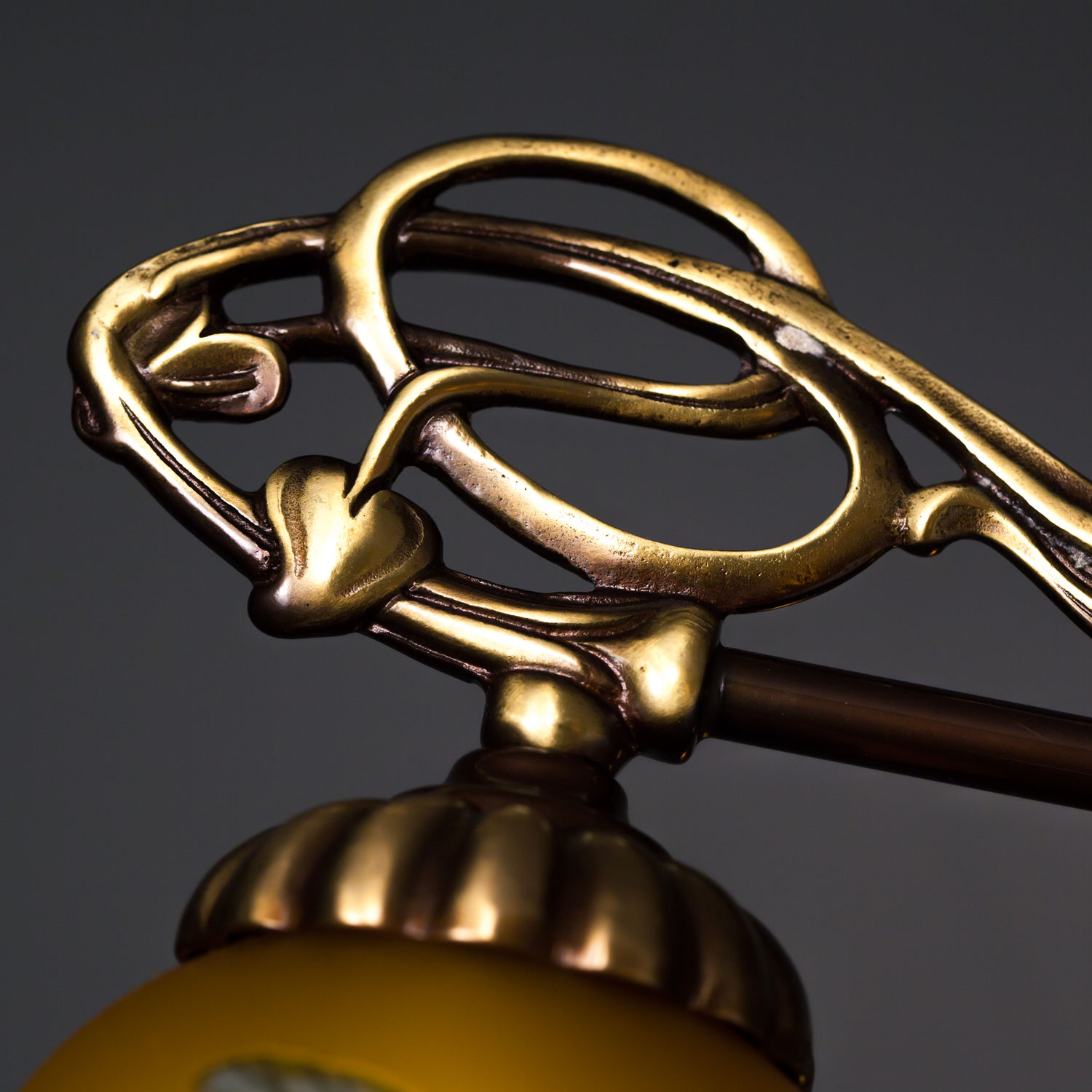 GALLE COLLECTIONのシリーズは、単なるガレランプの模倣ではなく、そのガラスの製法と作風を生かしつつ、これをクラシックスタイルのメタルフレームと組み合わせることで生み出された、全く新しいデザインの照明器具です。