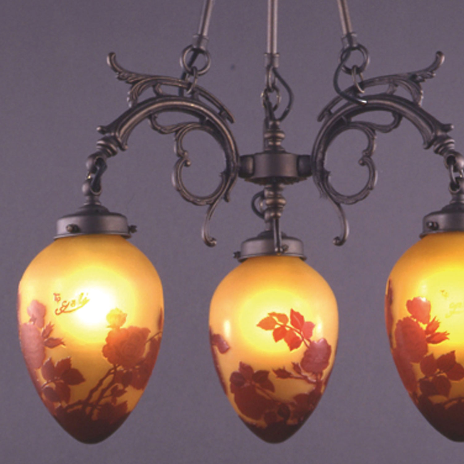ガレコレクションの薔薇文様のおしゃれな3灯シャンデリア照明 輸入照明 送料無料