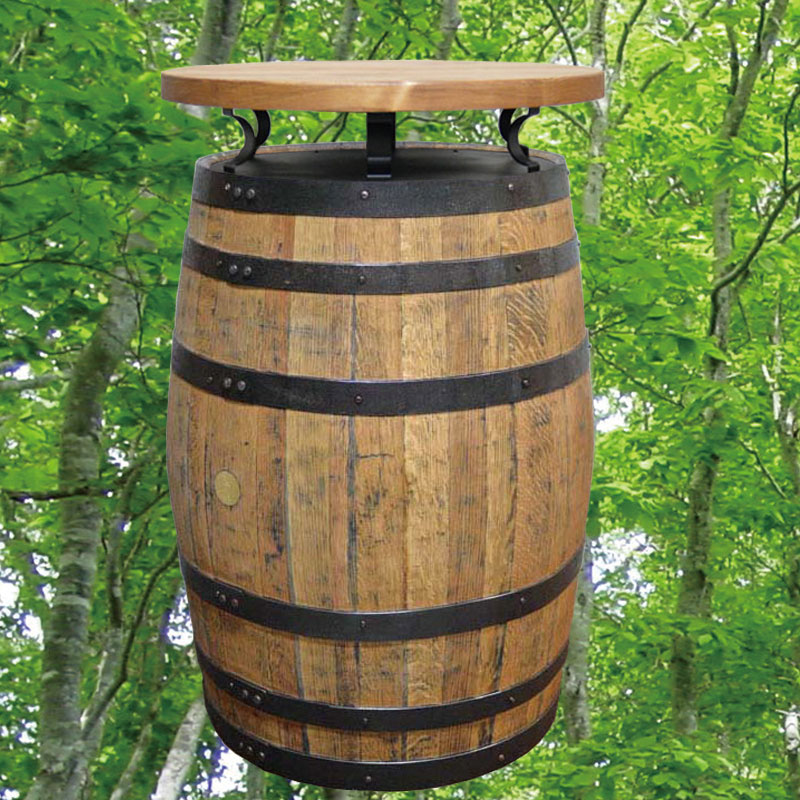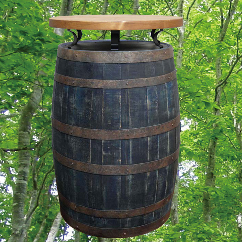 (北海道、九州、沖縄、離島等一部地域を除く) 180Lバレルバーテーブルハイは、黒タガ仕様のウイスキー樽に、アイアンステーを使用し無垢の天板を取り付けました。としても大人の雰囲気のウイスキー樽テーブルです。