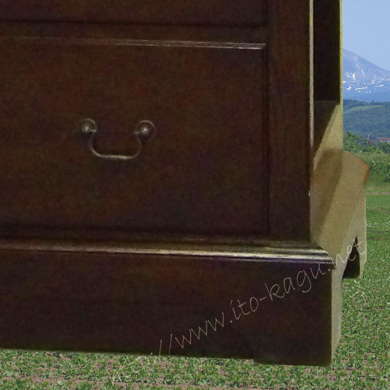 北の大地のこだわりの国産クラシック家具シリーズ「バッカス」の間口80cm幅の高級チェストです。とても深みのある色合いで、高級感漂う製品に仕上がりました。