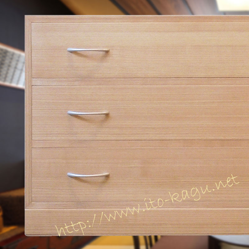 木目の美しさ、桐材の機能を最大に活かし熟練の職人により製作された総桐3段チェスト。