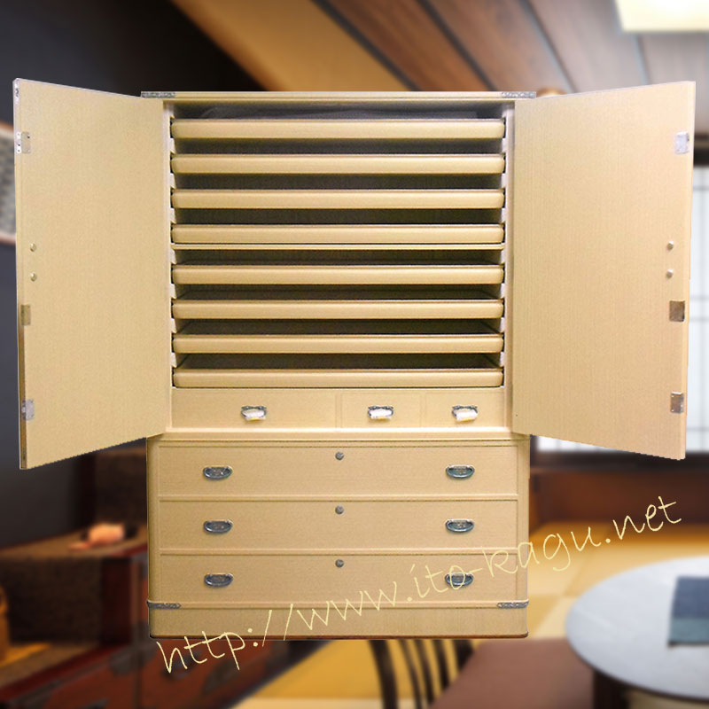木目の美しさ、桐材の機能を最大に活かし伝統工芸士により製作された最高級の総桐4尺胴丸衣裳箪笥。