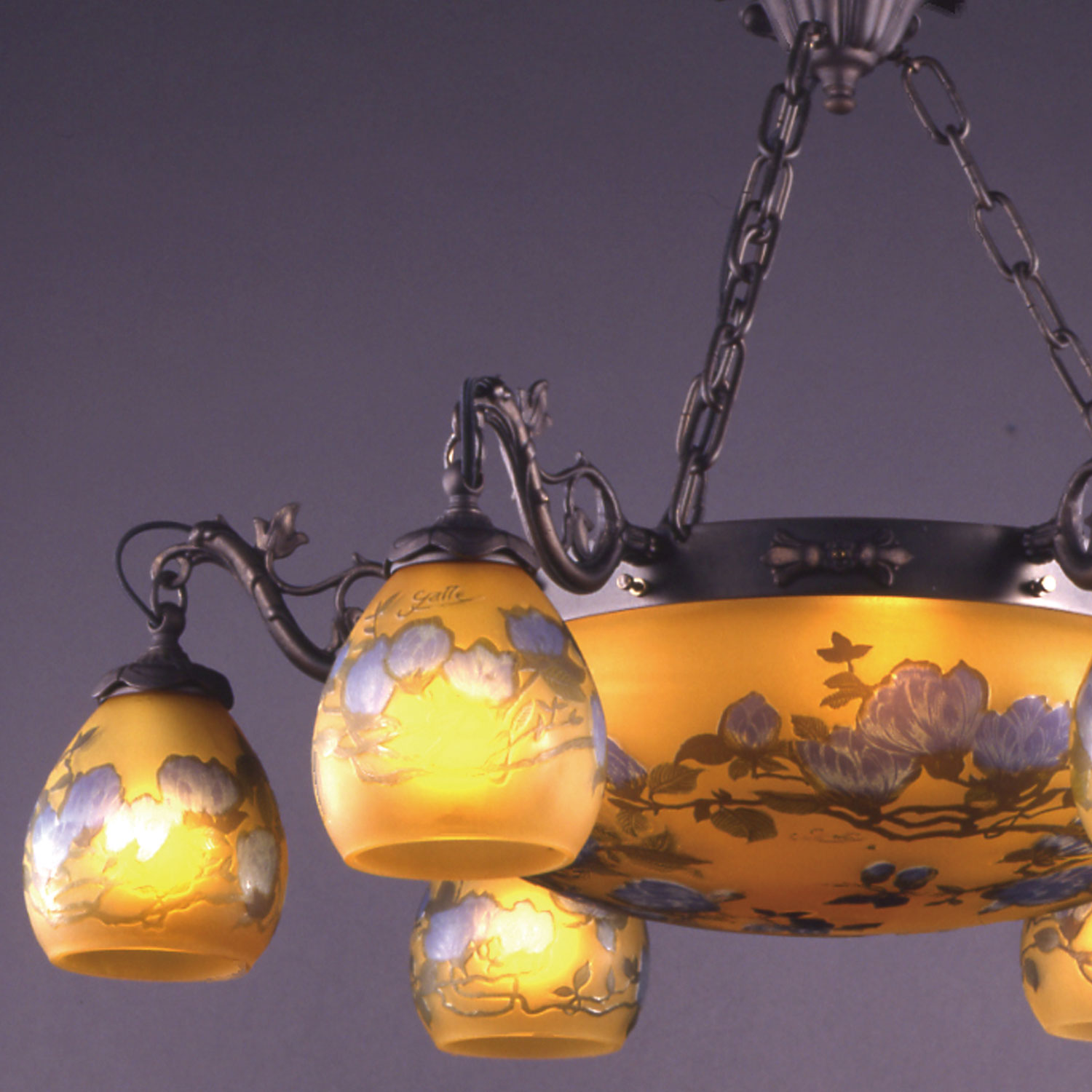 ガレコレクションの木蓮文様の超豪華10灯シャンデリアです。