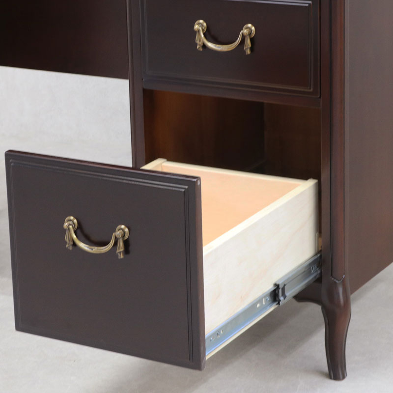 日本の優良メーカーの輸出向け海外工場製ですので、内装なども日本の高い基準を満たした優良品です。クラシック様式のミラーナD色の100cm幅デスク 逆輸入家具