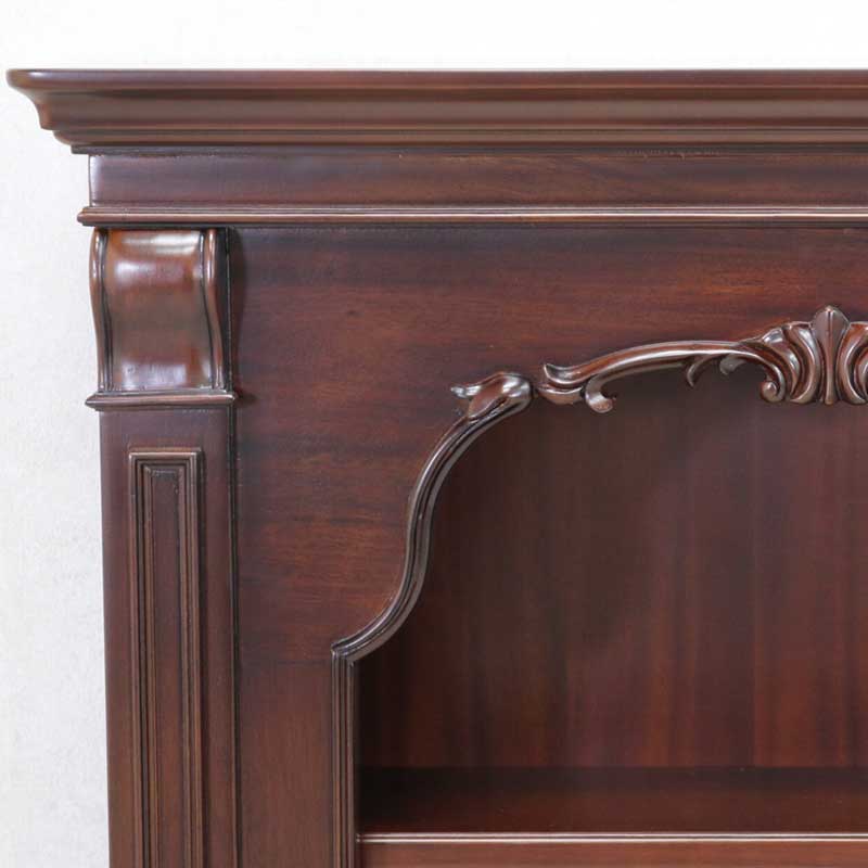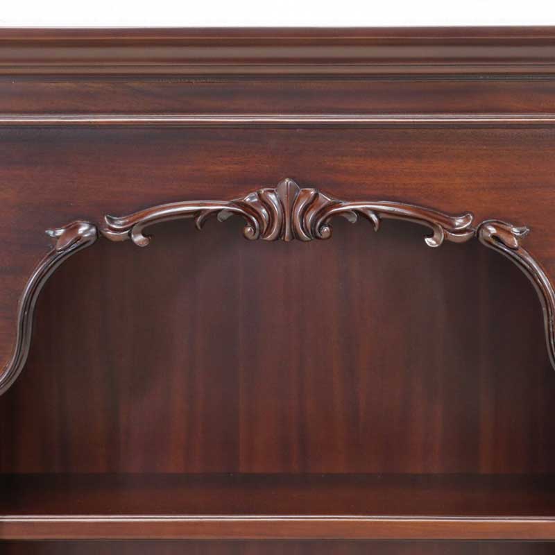 (北海道、沖縄、離島等一部地域を除く) 天板の下のゆるやかなアーチラインにアカンサスをモチーフにした彫刻を施し、マホガニー材をダークブラウン色に仕上げた上品なヨーロピアンクラシカル調のアイテム。