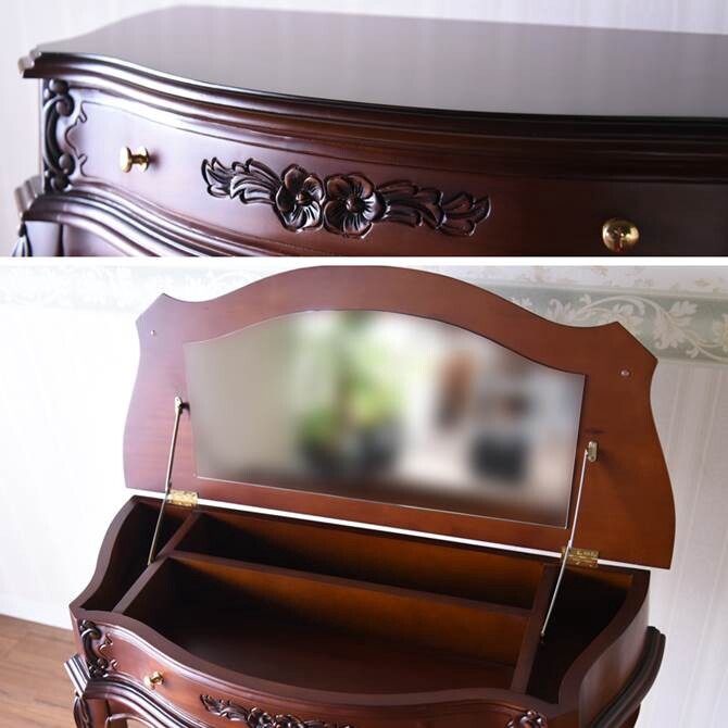 インドネシアの高級木材、マホガニーの無垢材を使用した、ヨーロピアンアンティーク調家具です。