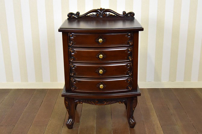 インドネシアの高級木材、マホガニーの無垢材を使用した、ヨーロピアンアンティーク調家具です。