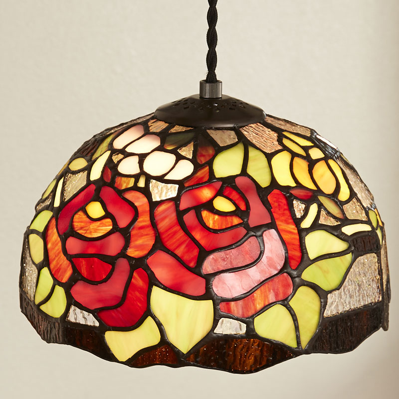 バラをモチーフにしたクラシック調のステンドグラスペンダントランプです。