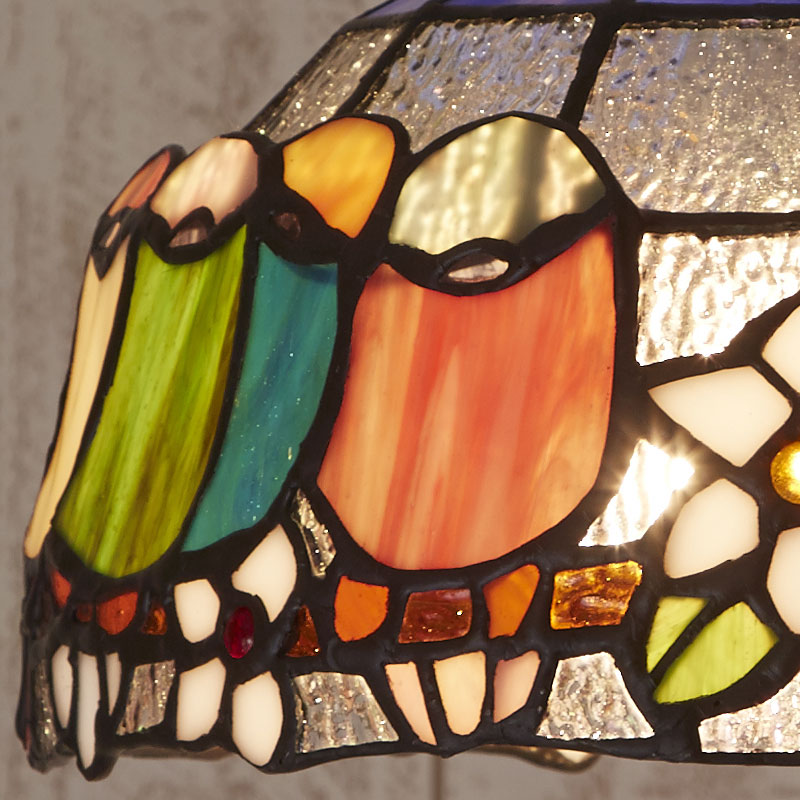 ガラスを重ねるダブルグルージングという技法が用いられているステンドグラスペンダントランプ。