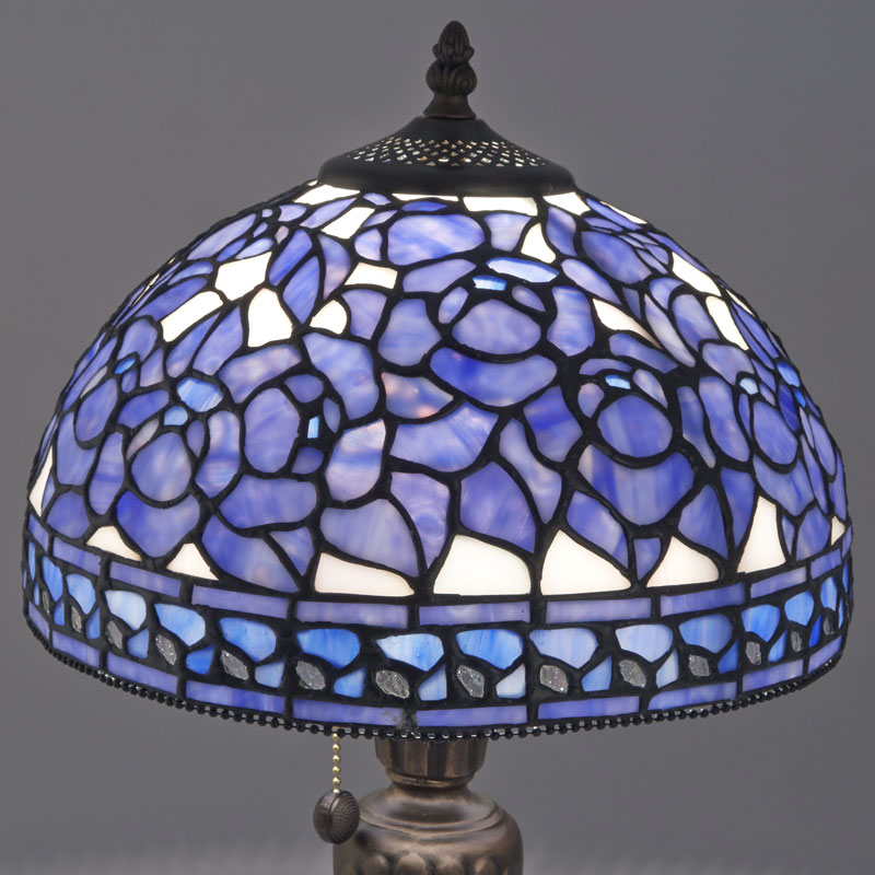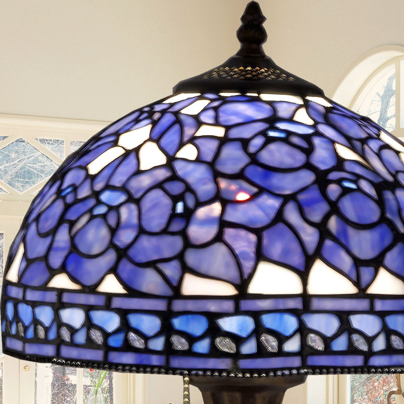 アンティークな雰囲気のブルーのバラのデザインを配したシックなスタンド照明です。