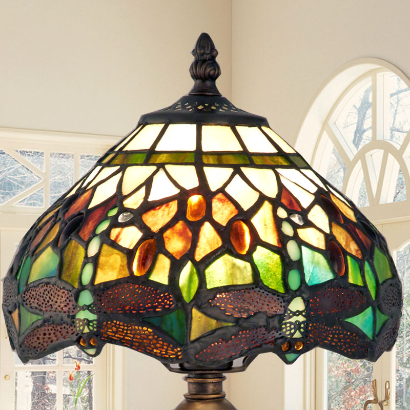 ティファニーランプでも有名なトンボをモチーフにしたステンドグラステーブルスタンド。