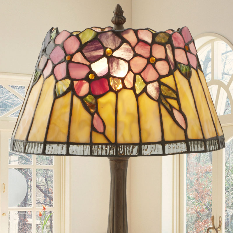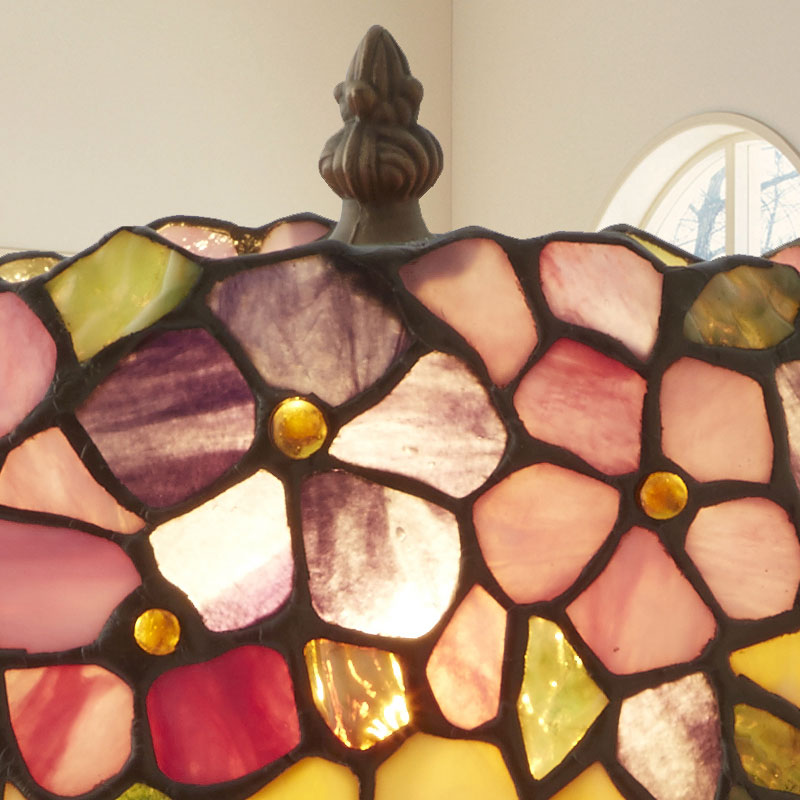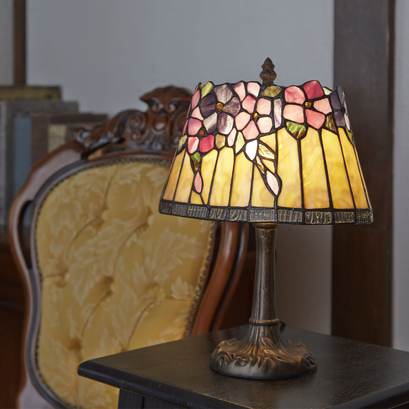 セードの形も、通常のステンドグラステーブルランプと異なり、台形型をしていておしゃれです。