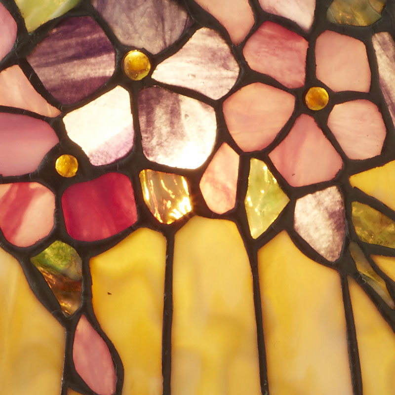 通称「Tiffany Lamps」ティファニーランプとも呼ばれるステンドグラスランプ。ニューヨーク5番街のティファニー商会の創業者チャールズ・ルイス・ティファニーの長男ルイス・カム・フォート・ティファニーによって開発された豪華な色彩の乳白色の色ガラスとその色ガラスを使用したランプの制作技法によって、現在では、アメリカン・アール・ヌーボーの世界を楽しませてくれる身近なインテリアとして作られるようになりました。