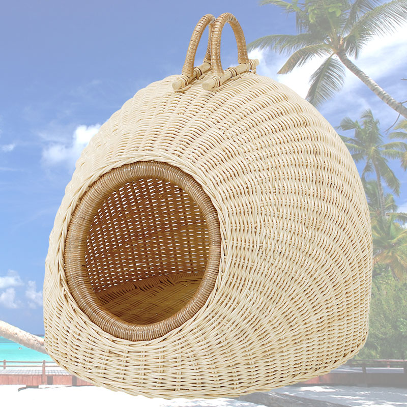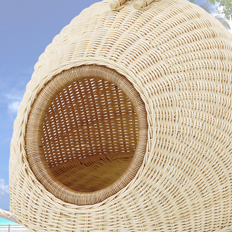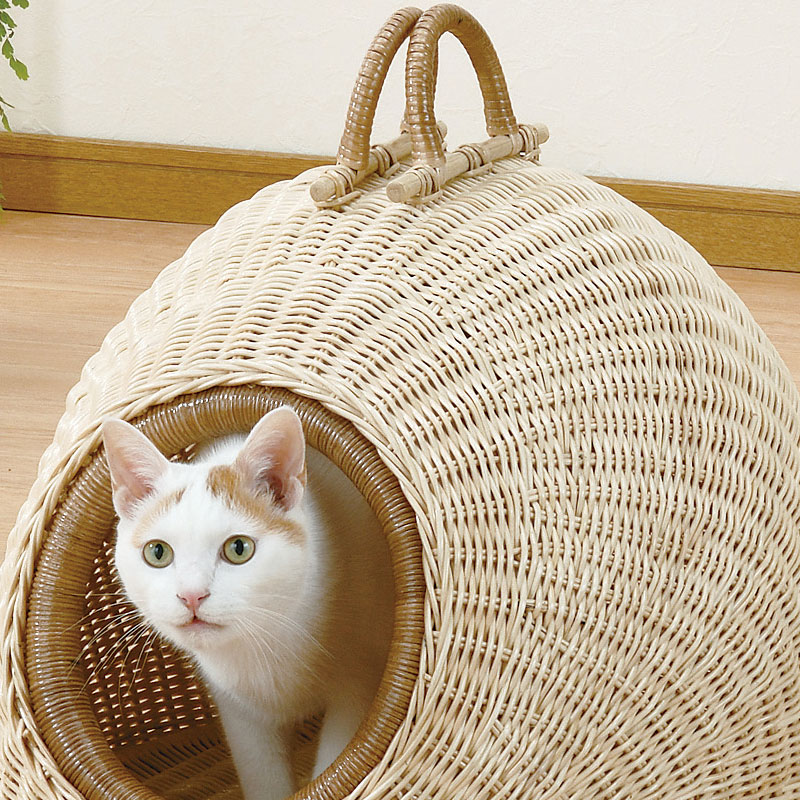 ペットが安心して休めるスペース、籐製のペットンハウス。特有の丸みを帯びたフォルムはお部屋のインテリアとしても最適です。夏は風通しもよく、涼しく、冬はラタンのぬくもりで温かく過ごせます。