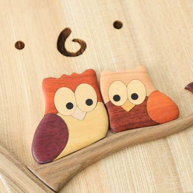 (沖縄、離島等一部地域を除く) 美しい木目の板に、多彩な木の色で描いた、可愛いふくろうの時計。お部屋を柔らかな雰囲気で彩り、優しく時を告げます。また、温もりを感じさせるインテリアとしてもご愛用いただけます。