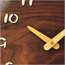 着色することなく、自然の木の色を生かして、様々な樹種を組み合わせて使用しています。銘木の数々を選りすぐり、商品に最も映える一色を使用するため、特定することなくその都度デザインに適した樹種を配置しています。