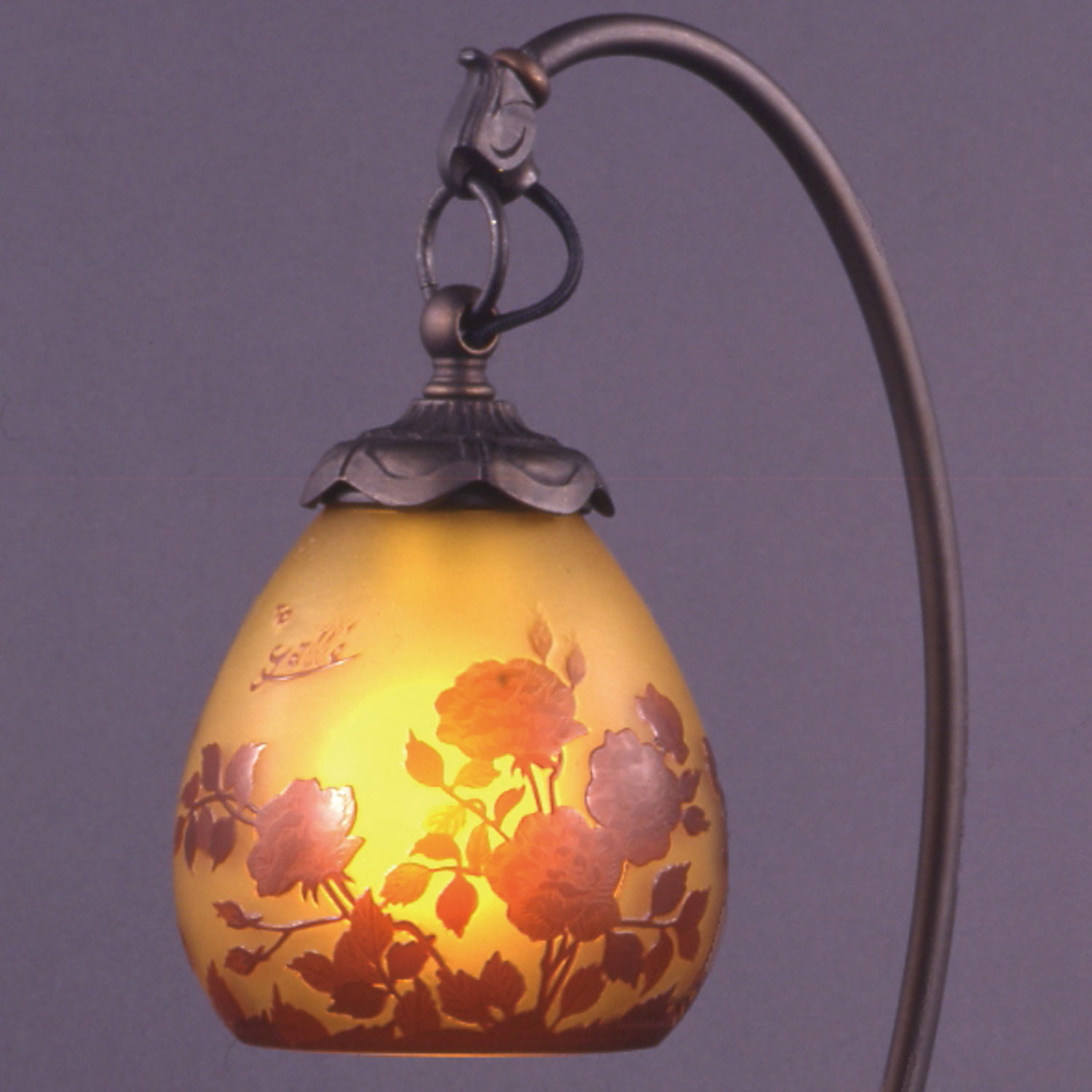 ガレコレクションの薔薇をモチーフにガレ本来の製法で製作された本格的なテーブルランプ。