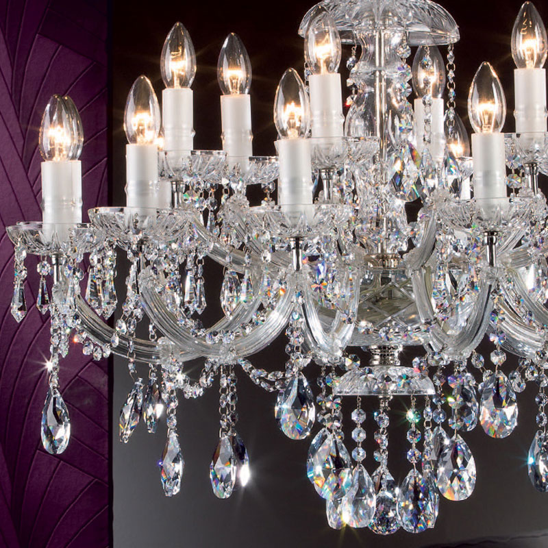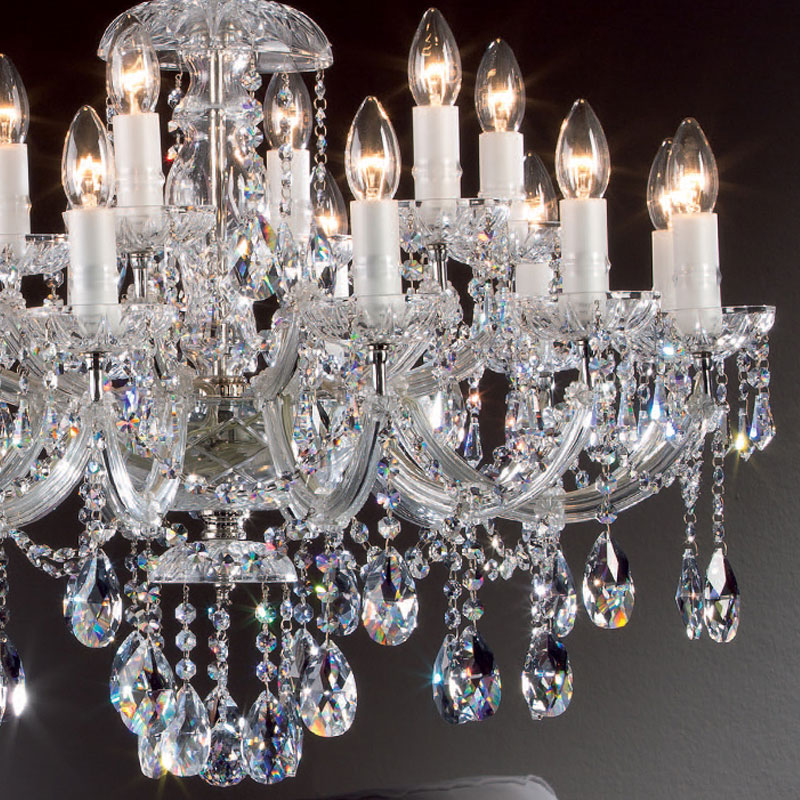 スペイン、COPENLAMP(コペンランプ)の18灯のヨーロッパらしいデザインのクリスタルシャンデリア。世界中で評価されているエジプト製クリスタルアズフールを使ったシャンデリア。
