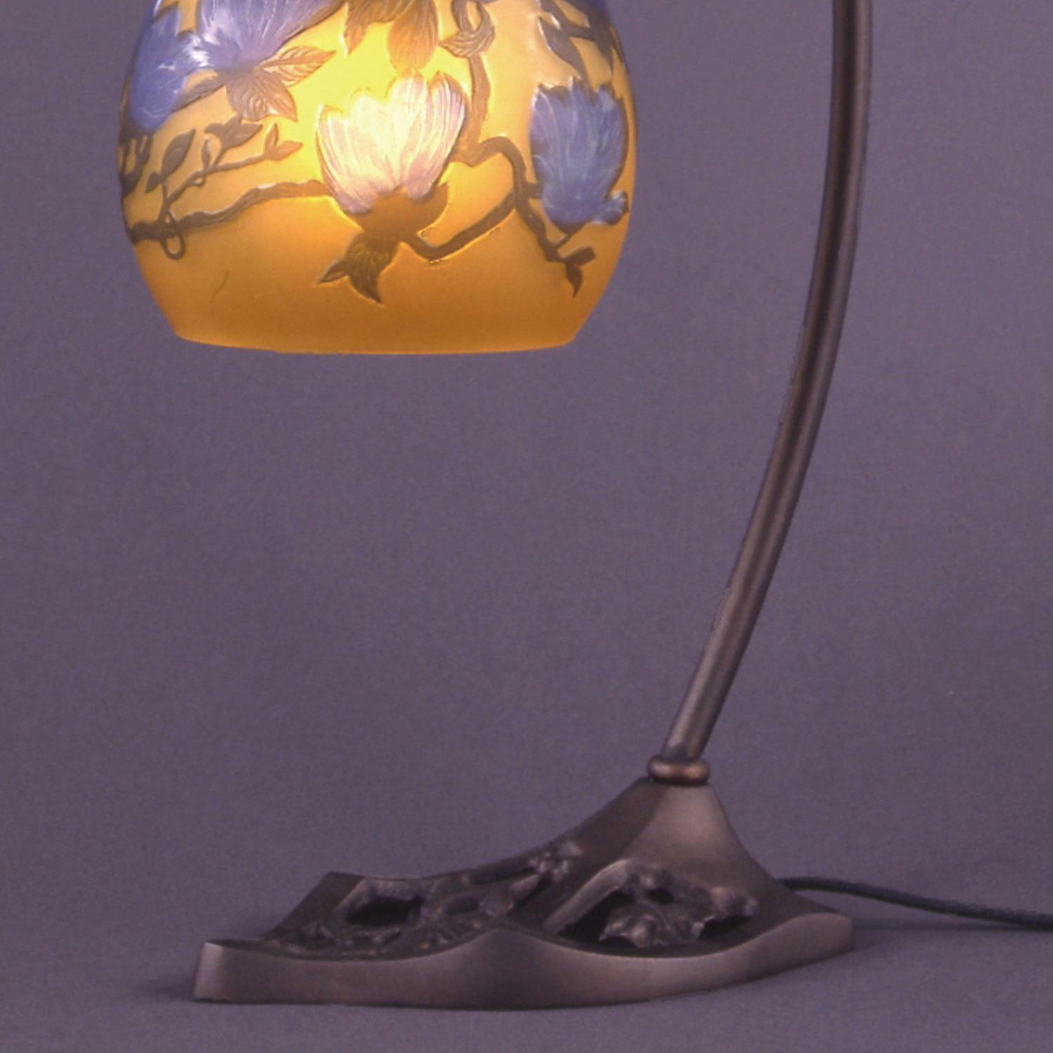 ガレコレクションのマグノリア(木蓮)をモチーフにガレ本来の製法で製作された本格的なテーブルランプ。