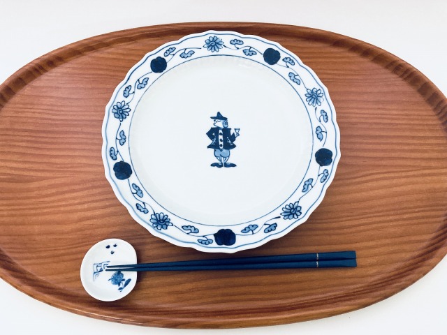 グラスを片手に乾杯のポーズをした異人さんが愛らしい図案のミート皿。お届は、通常1週間前後ですが、在庫切れの場合は、手作りの為、少々お時間をいただくことがございます。その場合は、メールかお電話にてご連絡いたしますので、よろしくお願いいたします。