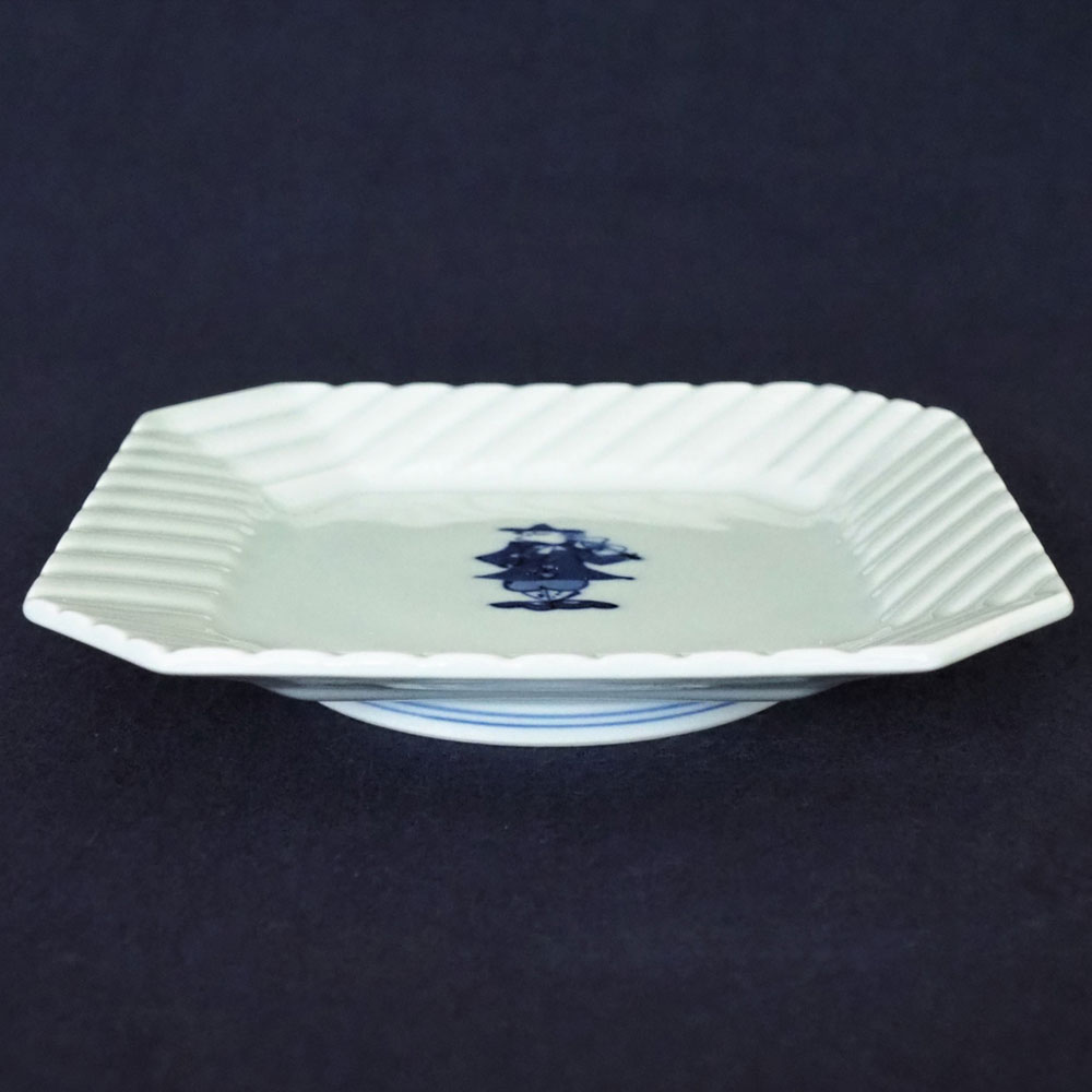 ミューシ゛ック・シリース゛ バイオリン・ストライプ隅切り皿 青花 有田焼