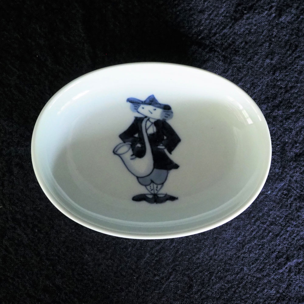 ミューシ゛ック・シリース゛ サックス小判小皿 青花 有田焼