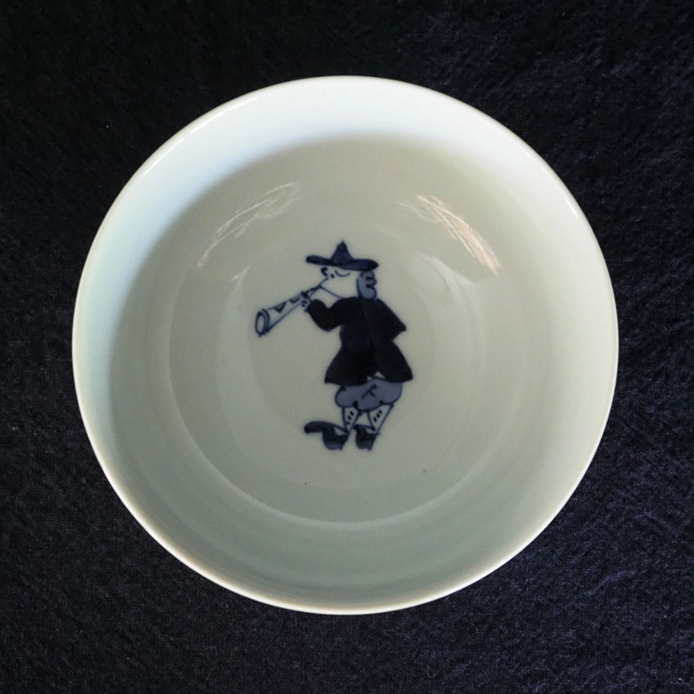 青花の代表的な絵柄の異人さんが楽器を手にしたデザインは、斬新で楽しいそうな雰囲気です。
