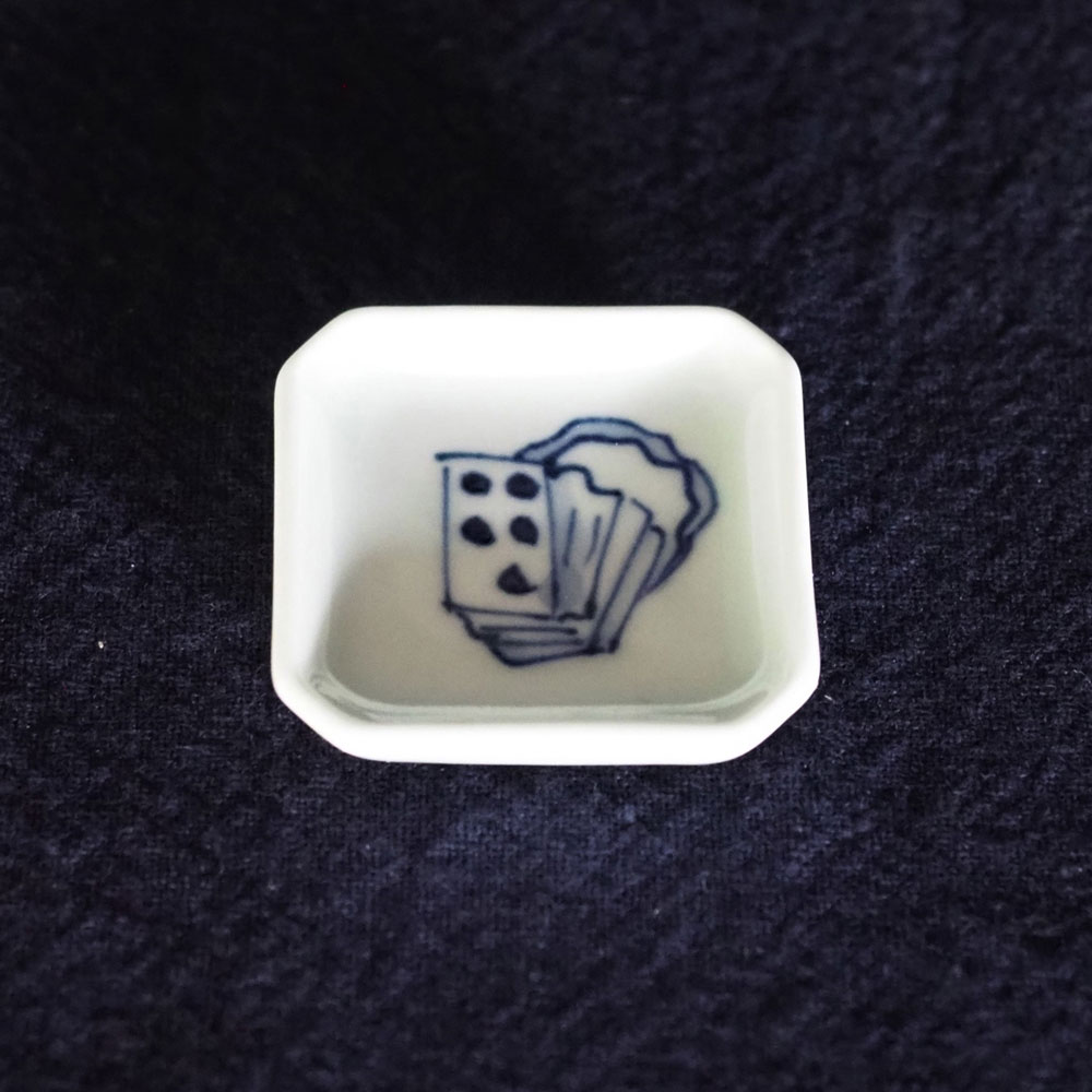 ハーモニー アコーテ゛ィオン角豆皿 青花 有田焼