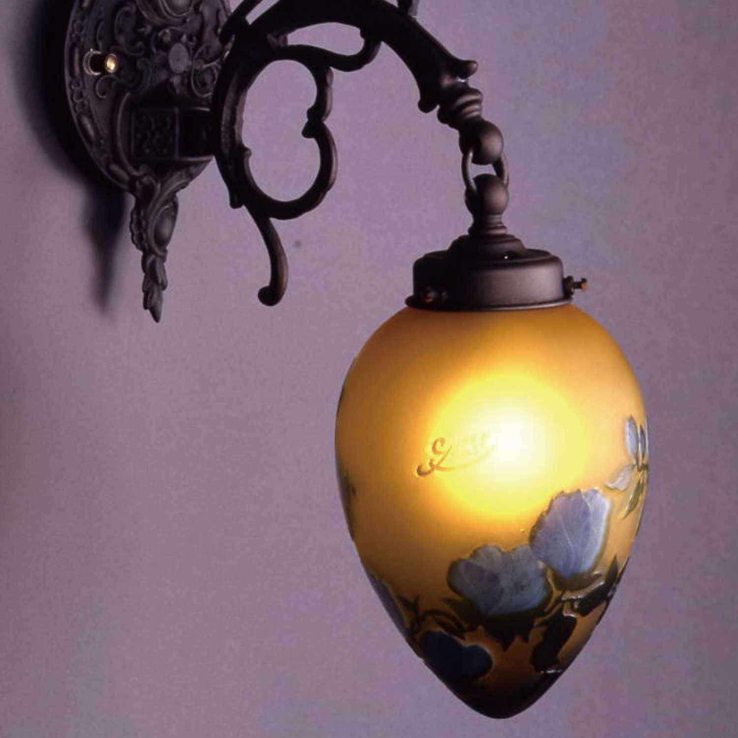 壁付けの木蓮をモチーフにした多層色被せガラスにフレームも豪華な1灯ブラケット照明。ガレコレクション
