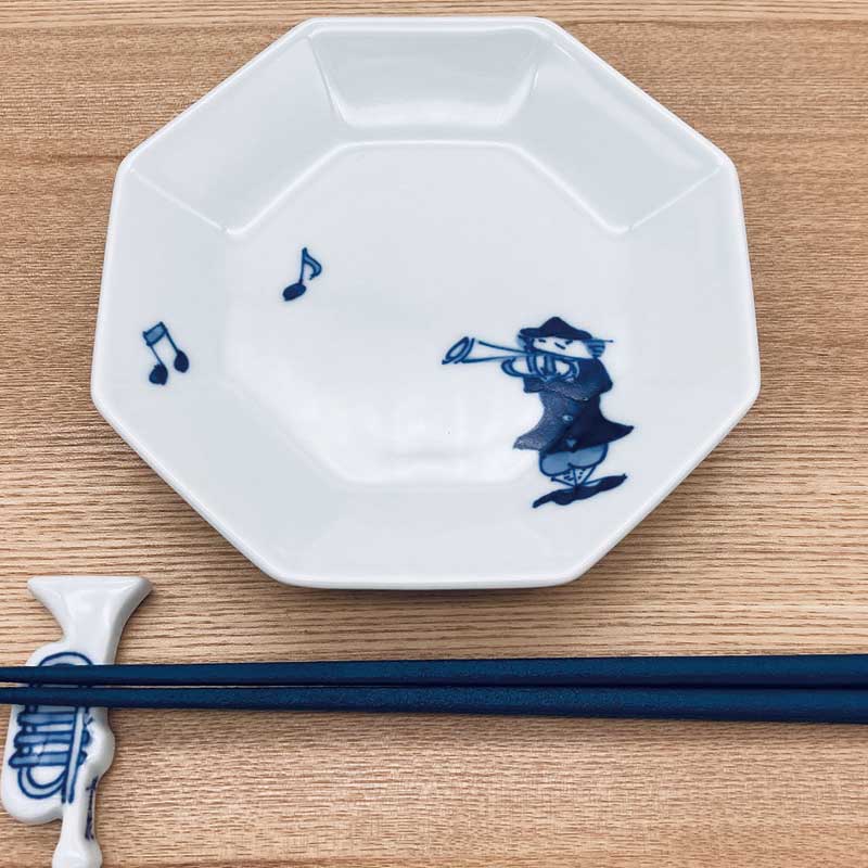 ハーモニーシリーズ トランペット正八角銘々皿 青花 有田焼