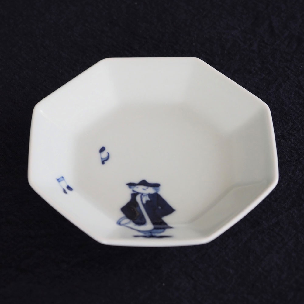 ハーモニーシリーズ サックス正八角銘々皿 青花 有田焼