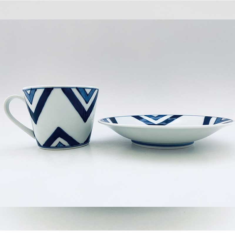 江戸紋そば型コーヒー碗皿 有田焼 青花