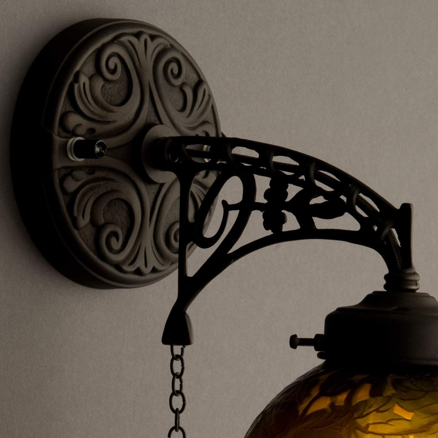 真鍮ダークブロンズのフレームに本物のガレランプの製法でアールヌーボー期のクラシカルで豪華なグレープ文様が映える壁付けの1灯ブラケット照明。Asfourクリスタルが装着され、さらに豪華さが増しています。ガレコレクション
