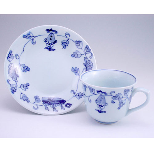 唐草異人百合型コーヒー碗皿 有田焼 青花