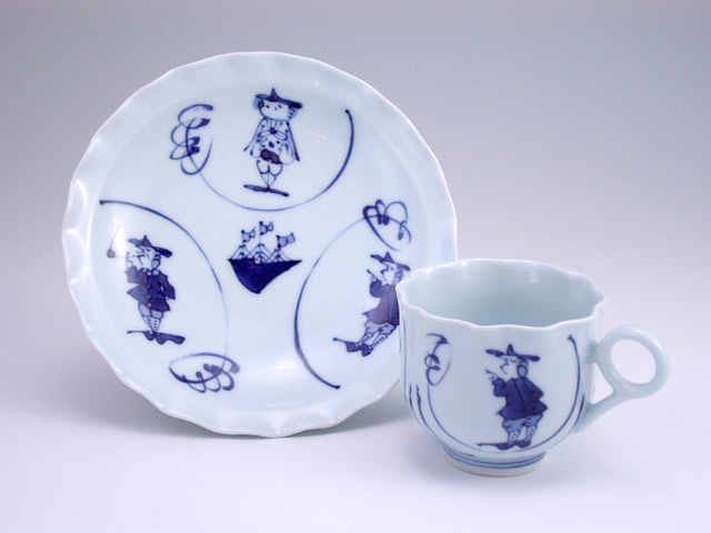 間取異人輪花コーヒー碗皿 有田焼 青花