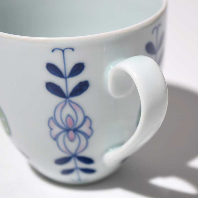 染錦カラスノエンドウマグカップ 青花匠 有田焼