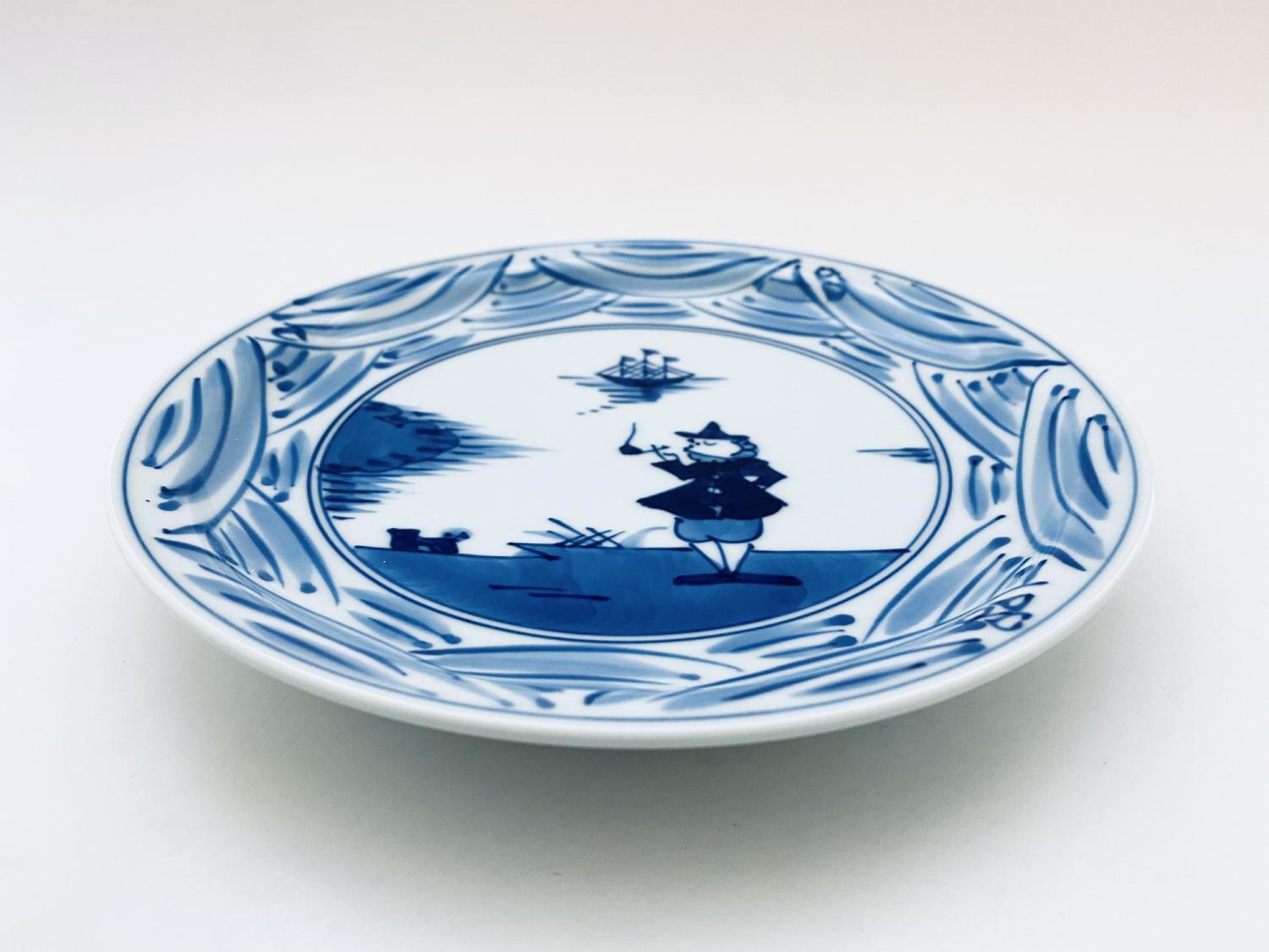 長崎紋玉渕7寸ケーキ皿 青花 有田焼