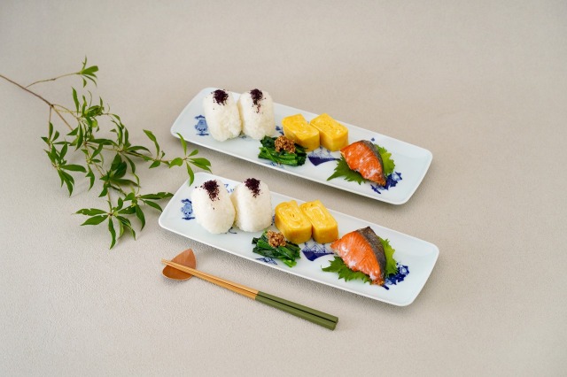 長さが約33センチの長角皿(さんま皿)で、さんまもすっぽり収まるサイズです。また一品料理をのせれば、レストランの前菜のようにオシャレです。