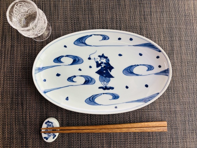 大航海小判幅広焼皿 青花 有田焼