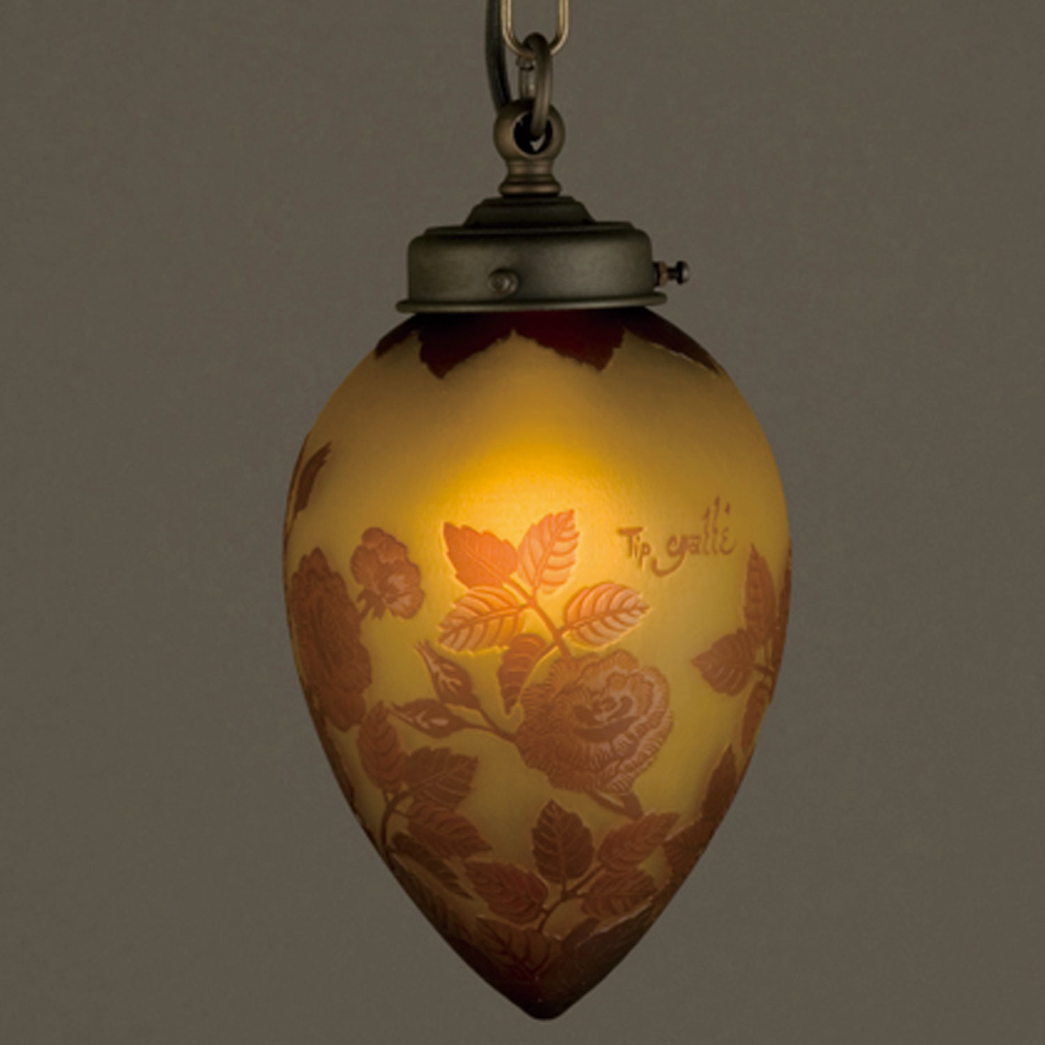 ガレコレクションの薔薇をモチーフとしたかわいらしい1灯ペンダント照明AKN-AGL-01DB-11。ガレコレクションは、繊細な色彩と情緒豊かなモチーフ、そして豊かな工芸技術で時代を彩った、エミール・ガレのガラス工芸品を現代に蘇らせたシリーズです。