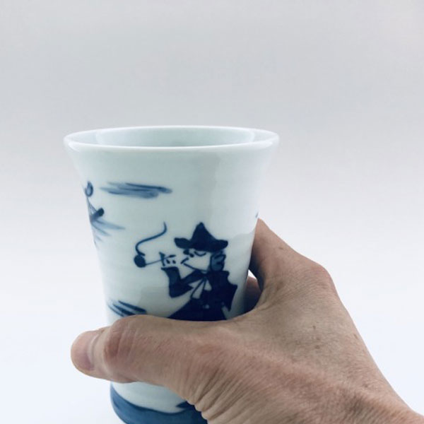 二人異人ビアカップ 青花 有田焼