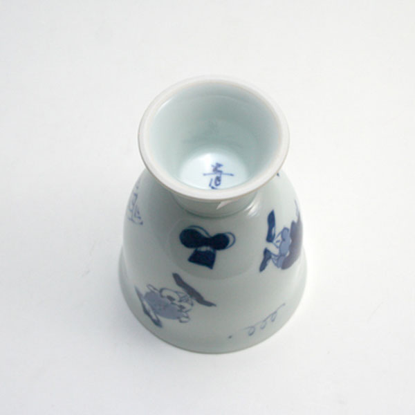 ワインカップとしてはもちろん、ジュースなどを飲む時にもどうぞ。絵柄は青花のロングセラー「異人づくし」です。