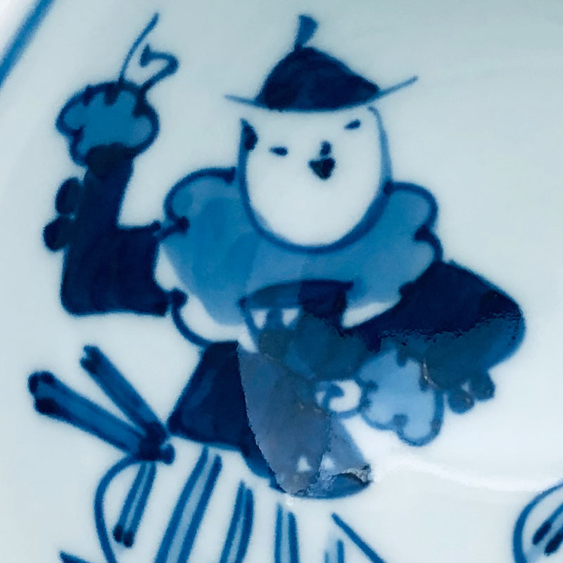 オランダ万才 3.8寸丸飯碗 青花 有田焼