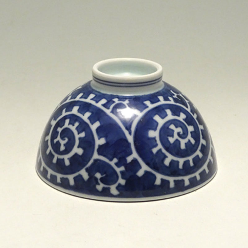 青花の飯碗の中では大きめのサイズで、男性の方におすすめです。絵柄は濃い藍色と白い文様のコントラストがきれいなTAKOKARAKUSA(たこ唐草)です