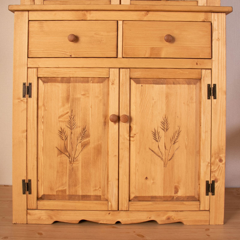 使い込むほどに風合いが楽しめる北欧パイン材を贅沢に使用したパインズカントリーシリーズの120cm幅のカントリーカップボード。