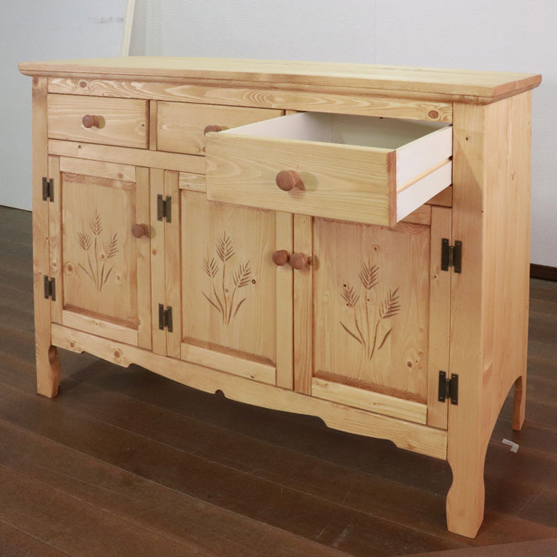 (北海道、沖縄、離島等一部地域を除く) 使い込むほどに風合いが楽しめる北欧パイン材を贅沢に使用したパインズカントリーシリーズのカントリーキャビネット。