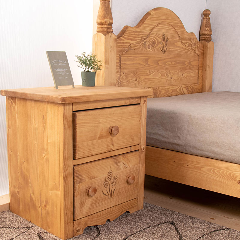 (北海道、沖縄、離島等一部地域を除く) 使い込むほどに風合いが楽しめる北欧パイン材を贅沢に使用したパインズカントリーシリーズのカントリーナイトテーブル。
