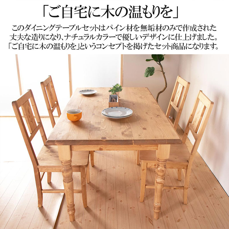 (北海道、沖縄、離島等一部地域を除く) 使い込むほどに風合いが楽しめる北欧パイン材を贅沢に使用したパインズカントリーシリーズのカントリーダイニング5点セット。